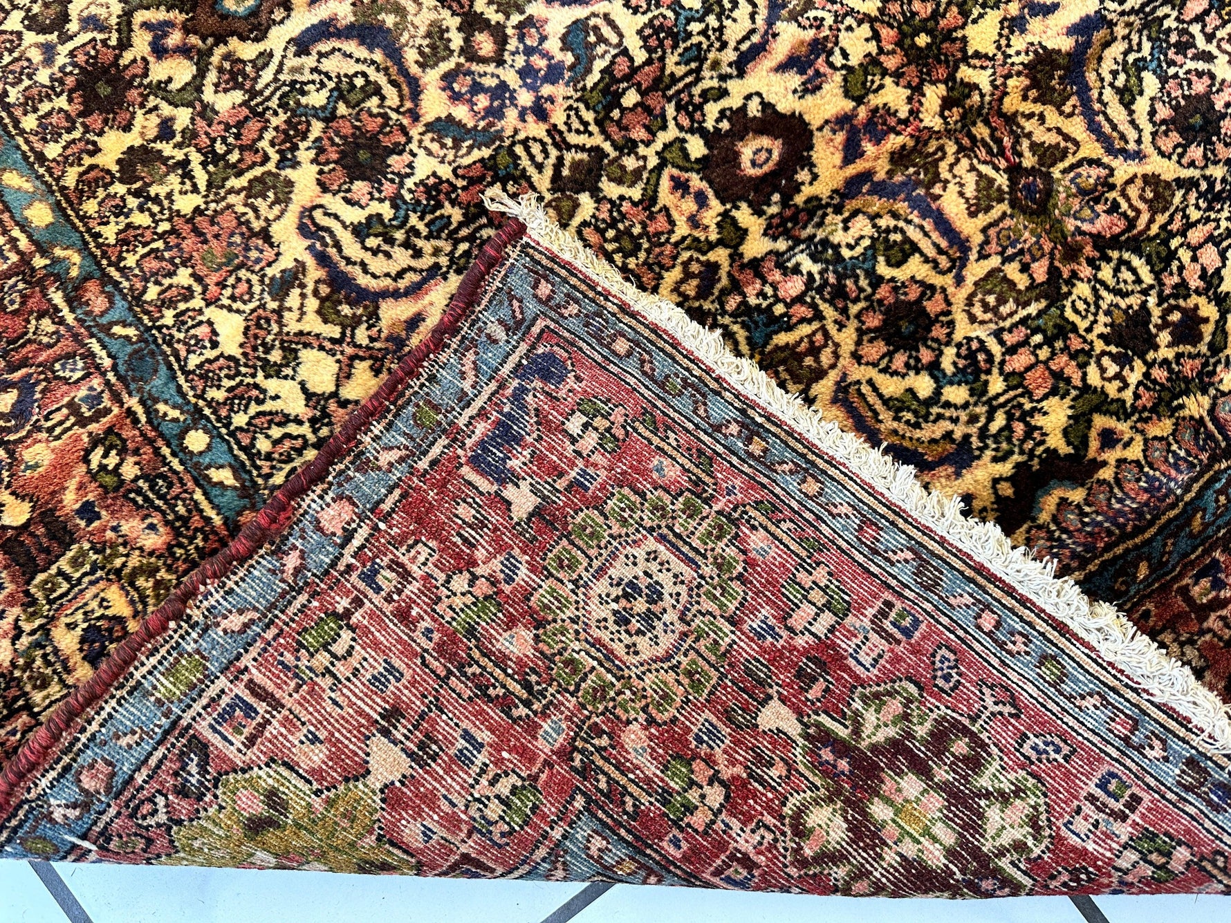 Bu İran Bidjar yolluk, zarafeti ve yoğun çiçek madalyon desenleriyle bilinen karmaşık Herati desenine sahip zamansız bir şaheserdir. Canlı kırmızı bordürler, karmaşık fildişi zeminle güzel bir kontrast oluşturarak geleneksel İran işçiliğini sergiler. Bu dayanıklı yolluk, yoğun kullanılan alanlar için idealdir ve koridorlara veya uzun alanlara sofistike bir dokunuş katar. Yüksek kaliteli yünden üretilen ve yaklaşık 1 cm kalınlığında olan bu halı, uzun ömürlü ve dayanıklıdır.