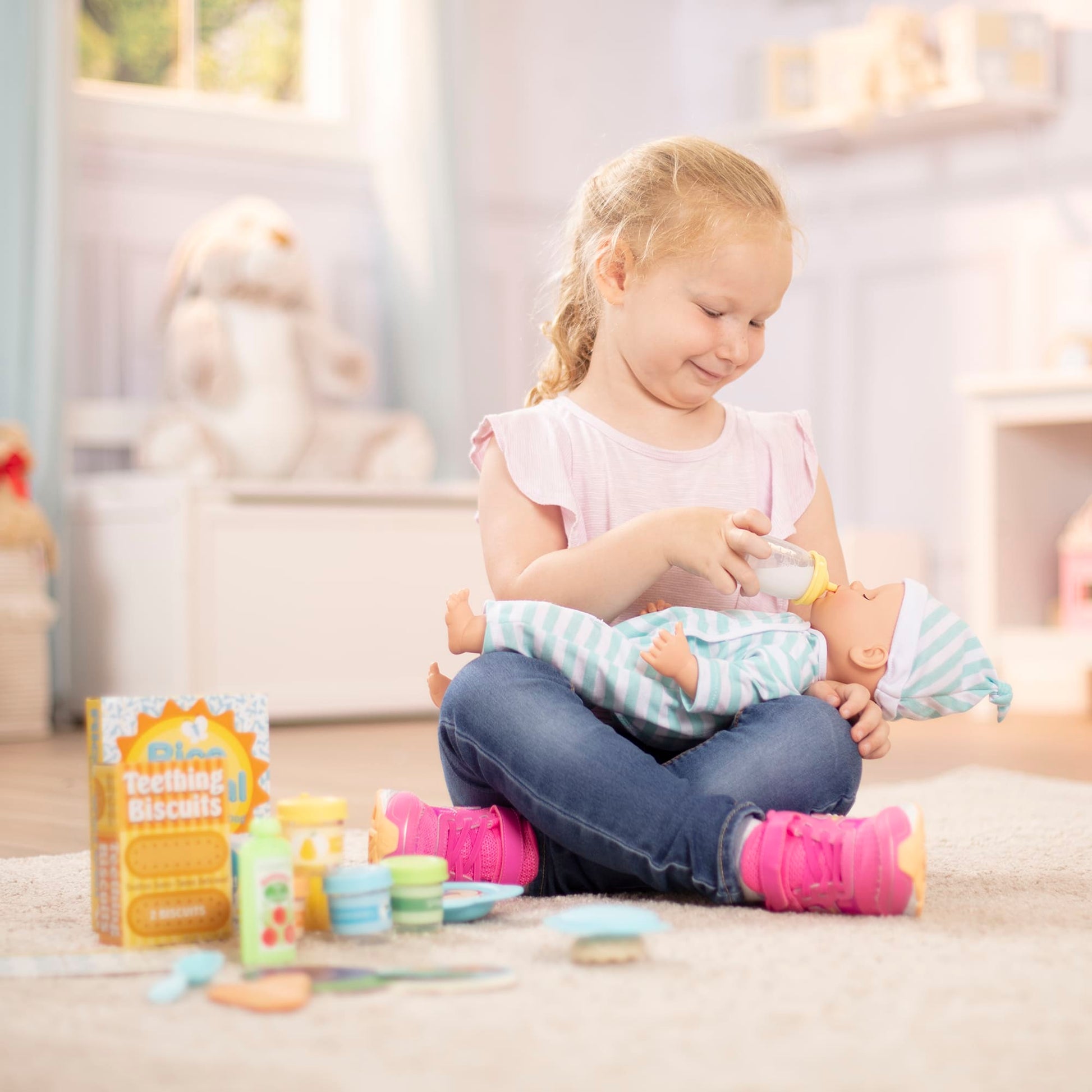 - 24-piece realistic baby feeding accessories sized just right for dolls and stuffed animals