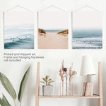 Modern Plaj 3'lü Poster Seti. Kumlu Plaj, Dalgalar, Sörfçüler