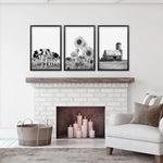 Çiftlikte geçirdiğimiz zamanı düşündüğümüzde aklımıza gelen her şeyi temsil eden bu 3 siyah beyaz rustik fotoğraftan oluşan güzel set. İnekler, eski bir ahşap ahır ve ayçiçekleri - harika, değil mi? Hepsini birlikte veya ayrı ayrı mutfağınıza veya oturma odanıza asın 😉
