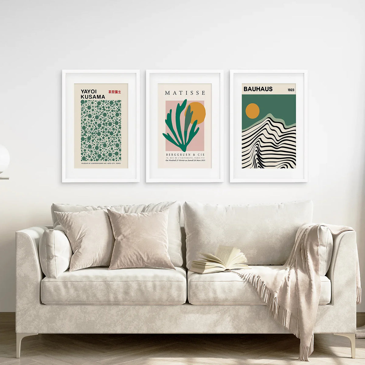 Adaçayı Yeşili 3'lü Baskı Seti. Bauhaus, Kusama, Matisse Tarzı