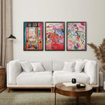 Matisse'in nefes kesen suluboya manzaralarından oluşan bu üçlü baskı setiyle mekanınızı güzelleştirin. Bu büyük duvar sanatı eserleri, oturma odanızda veya yatak odanızda sergi havası yaratmak için idealdir. Bu harika duvar sanatı seti, Matisse'in özgün tarzını ve doğa sevgisini yansıtır. Seti bir arada kullanarak bütünsel bir estetik yaratın veya odanızı güzelleştirmek için diğer parçalarla birleştirin.