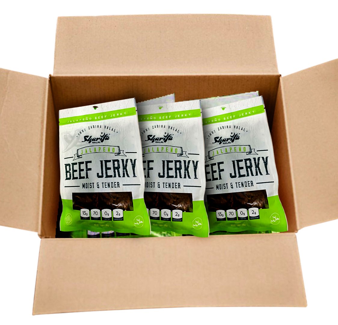 SHARIFA HELAL DANA SOSLUSU, JALAPENO, (1 Kutu) (12-2,85 OZ. POŞET) – HARİKA HER GÜN HELAL SOSLUSU DANA ETİ ATıştırmalığı, %100 GERÇEK ZABIHA HELAL DANA ETİ, 13 G PROTEİN, 70 KALORİ, 0 G TRANS YAĞ VE 2 G KARBONHİDRAT